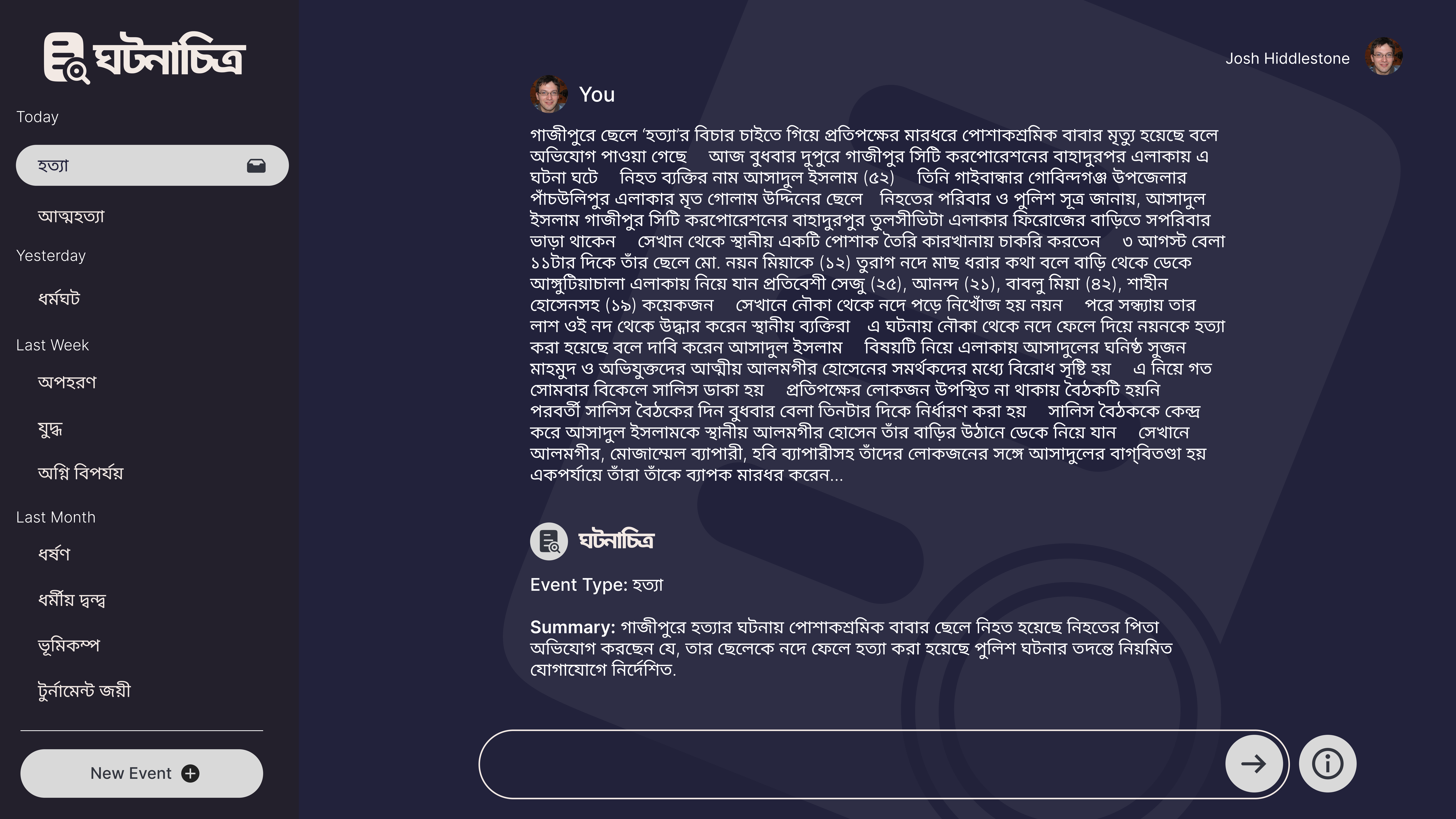 a web application that can detect events from bangla news text sources. stack: react, python, flask |